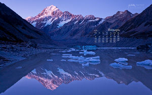 Mounk Cook, Hooker Glacier Lake, New Zealand